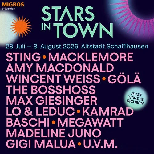 Set in the heart of Schaffhausen’s old town, affectionately known as the «Piazza Grande of German-speaking Switzerland», the festival is renowned for its exceptional concerts and spectacular line-ups. Stars in Town is regarded as one of the friendliest and most charming festivals in Switzerland.